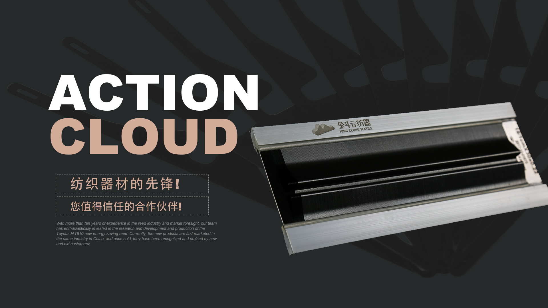 憑借十多年鋼筘行業(yè)經(jīng)驗及對市場的前瞻性,我們團隊滿懷熱情的投入到豐田JAT810新型節(jié)能鋼筘的研發(fā)和生產(chǎn)當(dāng)中,目前新產(chǎn)品在國內(nèi)同行業(yè)中先行上市銷售,一經(jīng)銷售就得到了新老客戶的認可和好評!
